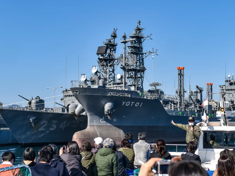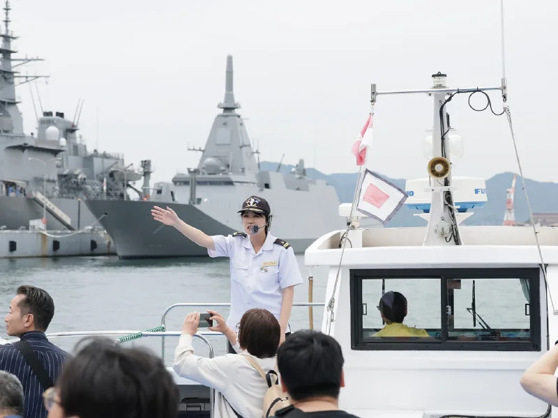 海上自衛隊潛水艦與護衛艦海上觀光遊船之旅,帶您從海上近距離觀賞艦艇雄姿。除現役軍艦外,更可一睹建造中的油輪、貨櫃船,以及昔日建造「大和戰艦」的船塢遺跡。約35分鐘的巡航旅程,邀您盡享吳市獨有的海景風光。