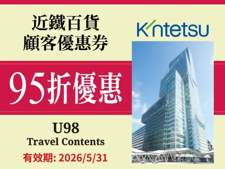 近鐵百貨大阪、京都、奈良等關西地區多家分店,結帳享10%免稅+95折折扣優惠。