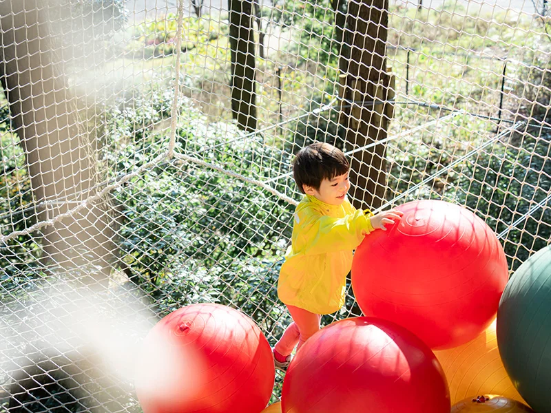 The course features various activity facilities, including a ball pit. You can slide down and enjoy nearly endless ways to play!