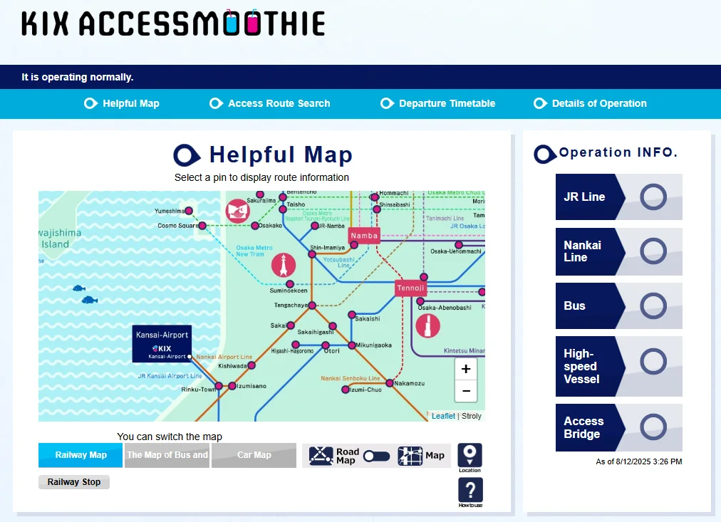 We recommend checking travel times, fares, and routes using the new search website launched by Kansai International Airport. Simply enter your destination, and the system will compare all available options with a clear, user-friendly interface—an extremely handy tool for your trip!
