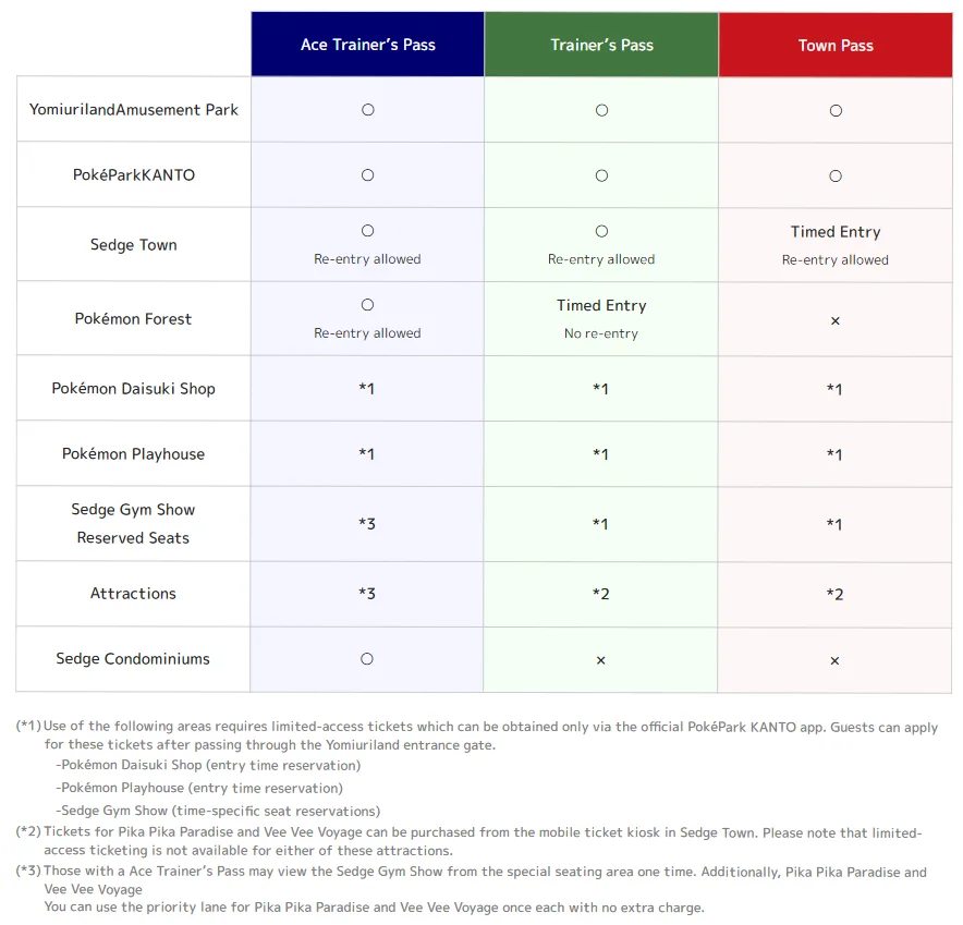 Cannot access Pokémon Forest, but entry to Sedge Town is allowed during the designated time and can be re-entered. To attend stage shows or enjoy attractions, visitors must still obtain a numbered ticket on-site and request a limited-access ticket. As this pass is scheduled for release in summer 2026, interested guests should stay updated with official announcements.
