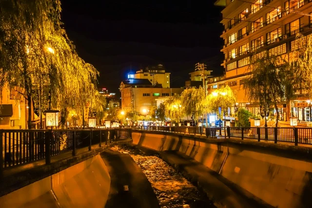 温泉の楽しみは入浴だけではありません。湯上がりに浴衣で歩く「温泉街散策」も大きな魅力です。木造建築が立ち並ぶ街並みや老舗和菓子店、足湯など、どこか懐かしくロマンあふれる雰囲気に心が癒やされます。