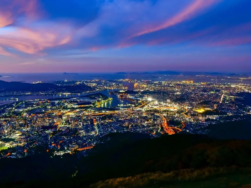 ここは「価値100億ドルの夜景」と称され、「新・日本三大夜景」のひとつにも選ばれています。ケーブルカーに乗って北九州市の有名な夜景スポット皿倉山へ向かうと、約10分で標高622メートルの山頂展望台に到着します。北九州旅行では外せないスポットです。