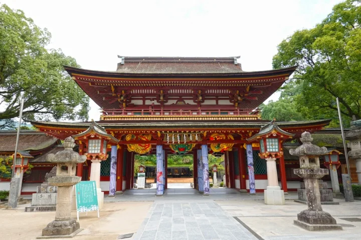 太宰府天満宮は学問と文化の神、菅原道真を祀る全国約12,000社の天満宮の総本社です。多くの人が試験合格や学業成就を祈願に訪れます。境内には国の重要文化財である御本殿のほか、博物館や彫刻、現代アート作品もあり、御神牛の像に触れると知恵が授かると言われています。