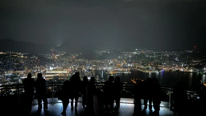 稲佐山夜景は長崎で有名な観賞スポットです。2021年には長崎の夜景が上海やモナコと並び「世界新三大夜景」に選ばれ、2018年には札幌や北九州とともに「日本新三大夜景」にも選ばれました。山頂展望台へは、フェラーリのデザインチームが手がけた空中ケーブルカーやモノレールでアクセスでき、360度の長崎の絶景を楽しめます。夜には街の灯りが美しく輝き、息をのむ美しさです。
