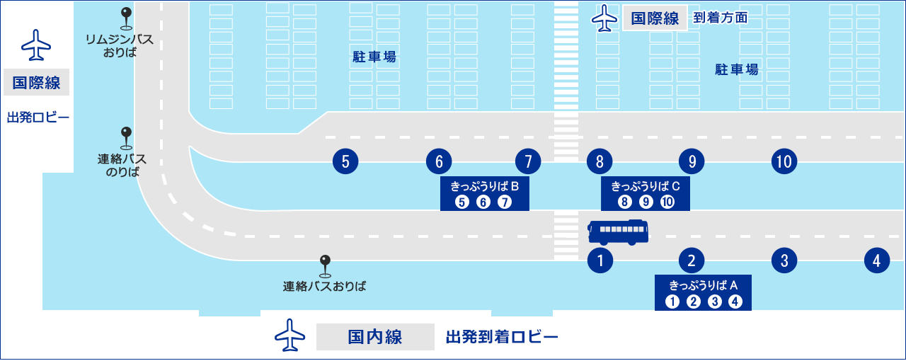 🚨 ワンポイント!一部の路線は第1ターミナルのみ停車する場合があります。乗車予定の便の時刻表やルートは、事前に公式サイトでご確認ください。