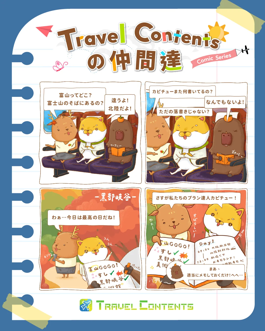 🚋電車に乗っている途中、カピチューが何か書いてる!? 🍁 秋に絶対行きたい富山・黒部峡谷の紅葉🍂