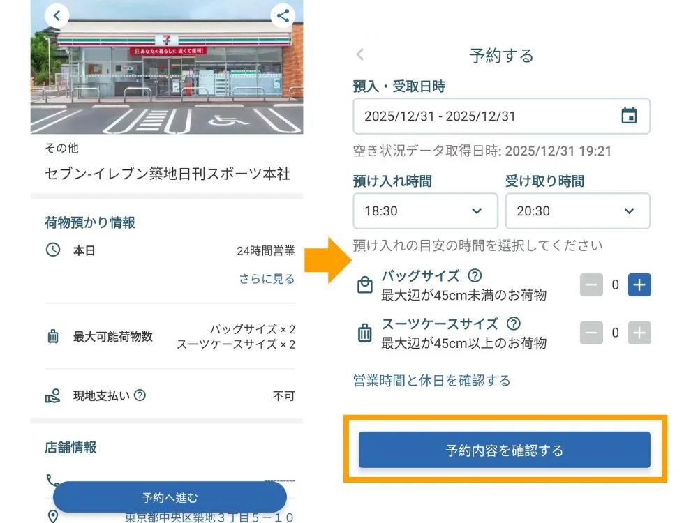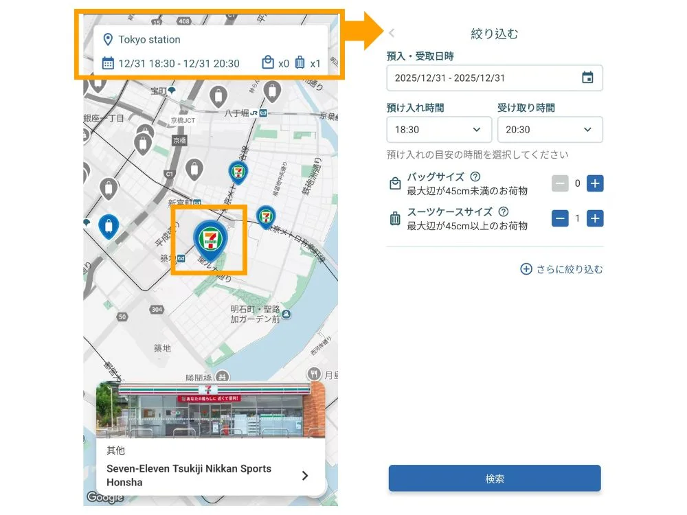 2.預けたい場所を選択(キーワード検索、または地図検索が可能)