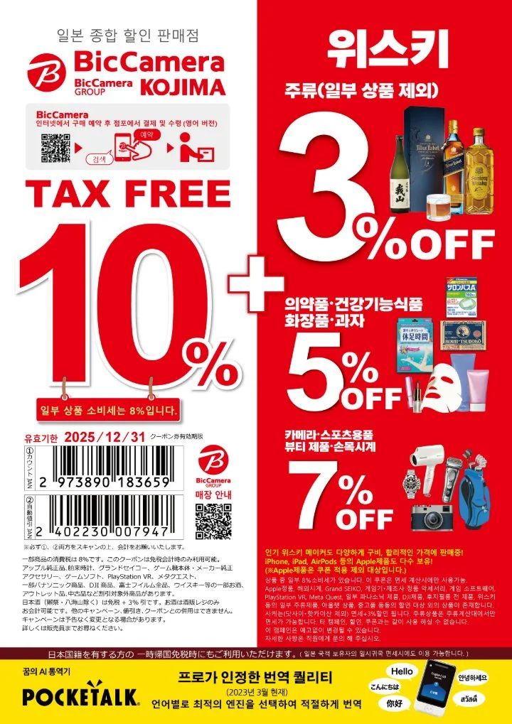 이 쿠폰은 일본 전국의 여러 BicCamera 매장과 같은 그룹의 KOJIMA 전자 및 Sofmap 매장에서 사용 가능합니다.