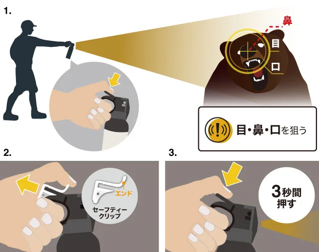 일본에서는 곰 피해에 대한 대책으로 곰 스프레이를 대여할 수 있는 서비스를 제공하는 업체가 있습니다. 대여기간은 3~5일입니다. 인터넷 예약 혹은 montbell 매장에서 예약할 수 있습니다. 매장에서 수령할 때는 신청서를 작성한 뒤 대여료와 보증금을 지불하고, 신분증을 제시하면 곰 스프레이를 받을 수 있습니다.
