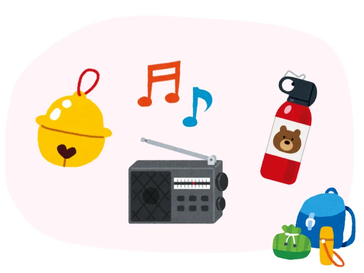 외출을 할 때는 방울이나 라디오를 가지고 가면 안심할 수 있어요. 방울은 소리랑 냄새로 ‘사람이 있어!’ 라고 곰에게 알려주기 때문에 곰이 자연스럽게 피할 수 있답니다. 게다가 곰은 특정 주파수에 민감하기 때문에, 걸으면서 라디오 방송을 내보내는 것도 효과적이에요.