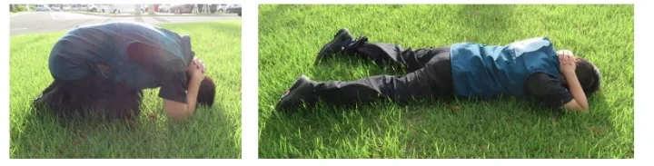 만약 곰의 습격을 받게 된다면 장애물 뒤에 숨거나, 엎드리고 무릎을 굽혀서 몸을 낮추고 양손으로 뒷목을 가리는 자세를 취해 자신의 몸을 보호하세요.