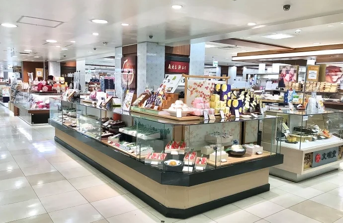 百貨B1F匯集了各地美味,包括水果、海鮮、壽司、便當、天婦羅、炸豬排、煎餅、糕點、日本茶、抹茶、日本清酒與威士忌等,各式美食讓人垂涎欲滴。