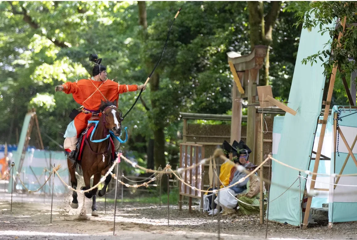 京都最古老的神社之一,與馬的神事淵源深厚。每年五月舉行的流鏑馬神事,武者策馬射箭,象徵除厄招福;牽馬儀式與御蔭祭中亦有神馬登場。馬被視為承載神明的聖獸,是感受馬之力量與優雅的重要神社。