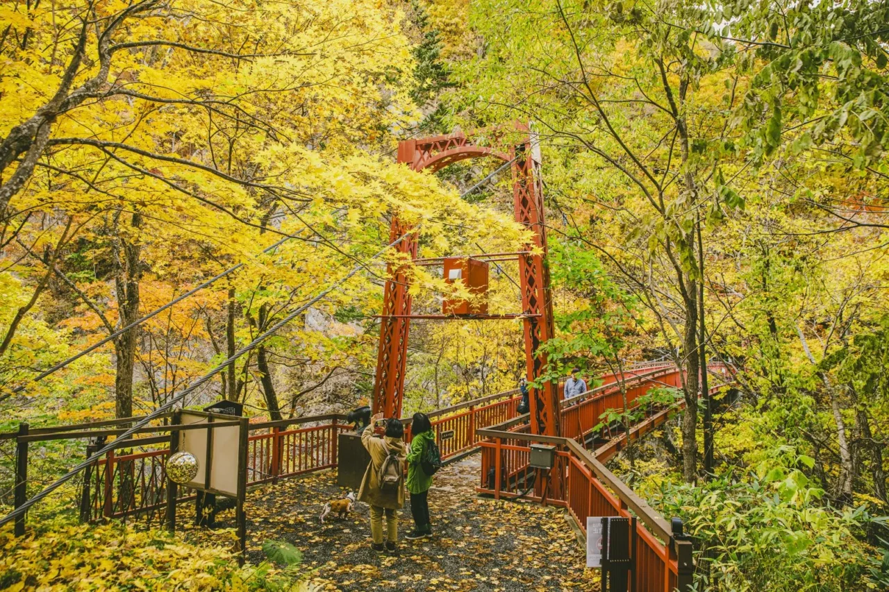 位于北海道札幌市南区,是札幌近郊知名的温泉乡之一,秋季时,整个溪谷会被枫红包围,形成如画般的景致。建议前往「二见定山之道」,能欣赏到枫叶倒映在河面的绝美景观。