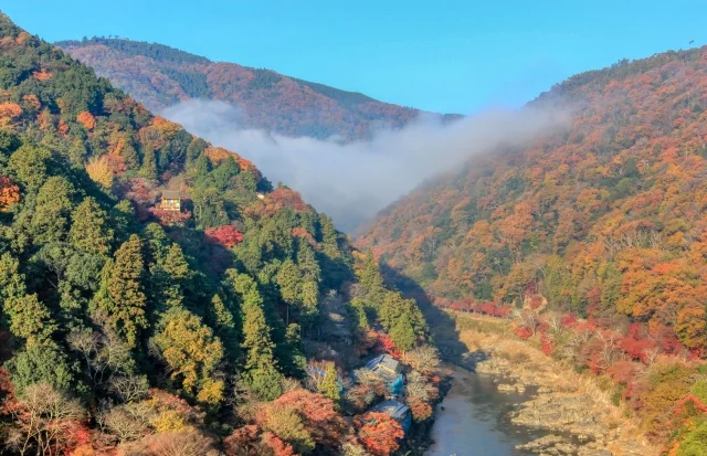 这里是关西知名的赏枫胜地之一。每年秋季,岚山的山林与渡月桥被缤纷枫叶染红,游客可漫步于竹林小径、桂川河畔,欣赏层层红叶倒映在河水中的美景。除了自然风光,还能顺游天龙寺、野宫神社等文化古迹。