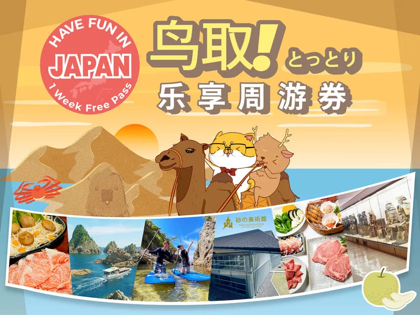 来鸟取,可以使用「鸟取乐享周游券」,精选了鸟取的知名人气设施与美食店家,一周内可以任选3个喜欢的设施,使用时也只需要出示QR code就可以轻松入场体验!