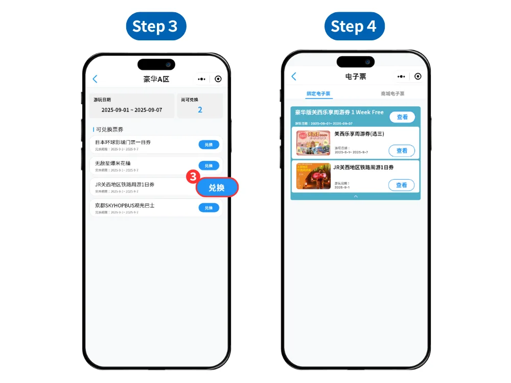Step 3:从豪华A区中选择心仪的商品,点选「兑换」,从豪华A区中选择心仪的商品,点选「兑换」,选择「游玩日期」,确认后就能得到电子票!