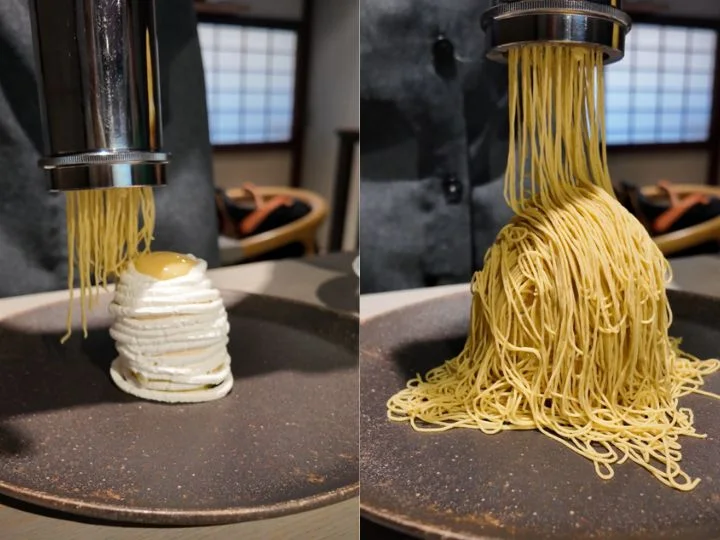 富山县冰见市传统手工乌冬面,采「手延制法」与「手打制法」制作,口感滑顺软糯且易于咀嚼。